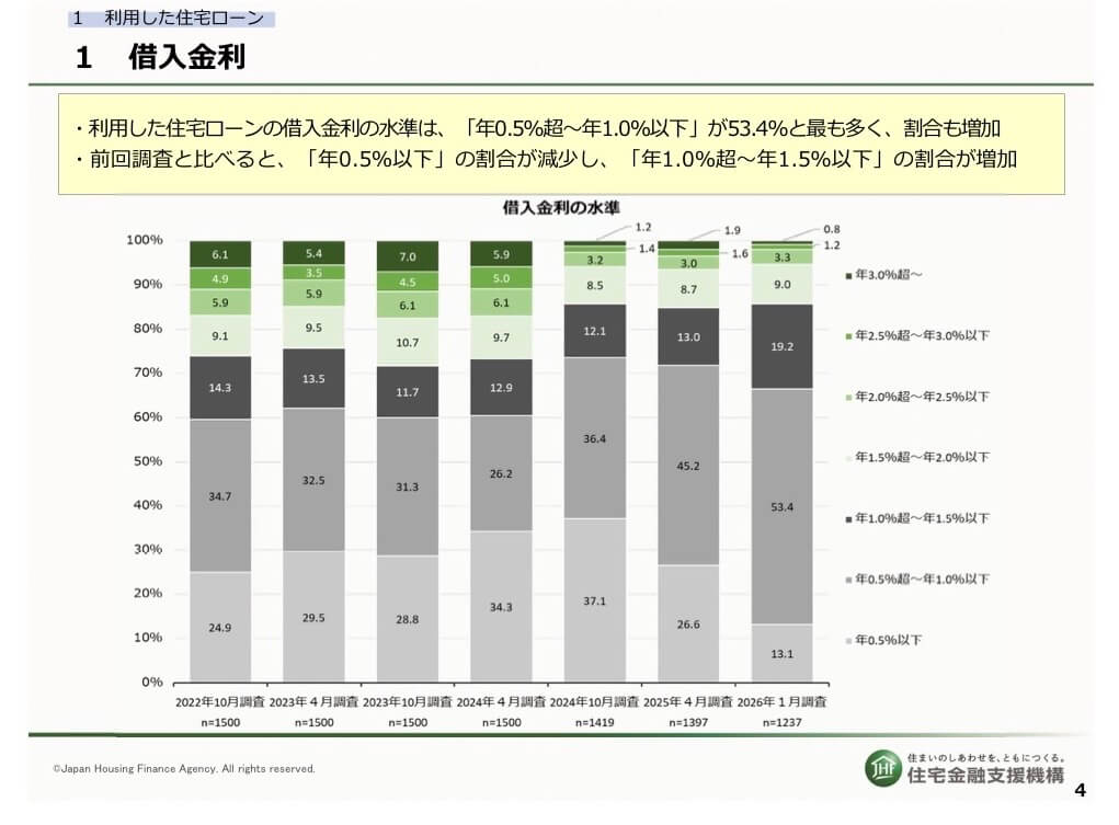 現在は「0.5%〜1.0%」で借りている人が多いものの以前と比べて低金利の割合は減り、